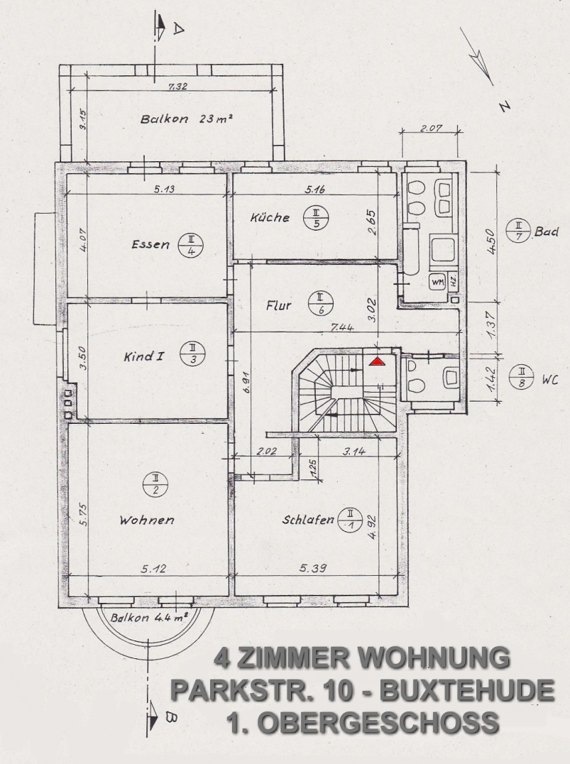 Zimmer: 4 zzgl. Küche, Vollbad, Gäste-WC, 2 Balkone, Flur.